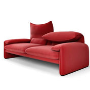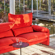 The Maralunga sofa, created by the famous Italian designer Vico Magistretti for Cassina, is an iconic piece of 20th century design. Recognizable by its warm and welcoming shapes, the Maralunga is especially famous for its height-adjustable headrest, a first in the world of furniture design. This system, achieved through a bicycle chain embedded in the foam cushions, transforms the back of the sofa into a comfortable headrest, adding remarkable functionality to an already elegant design.