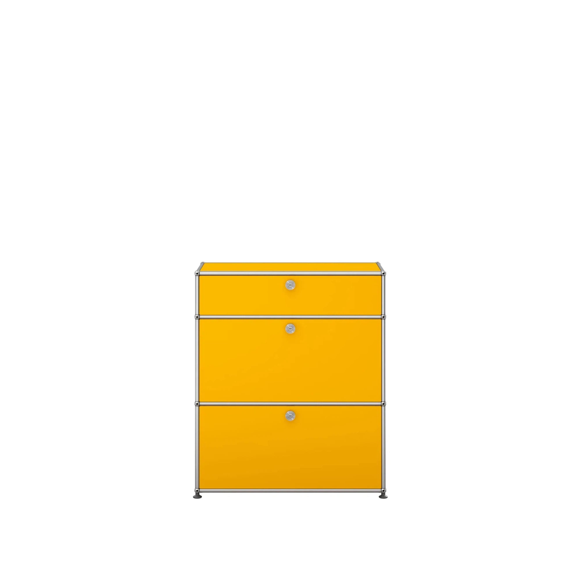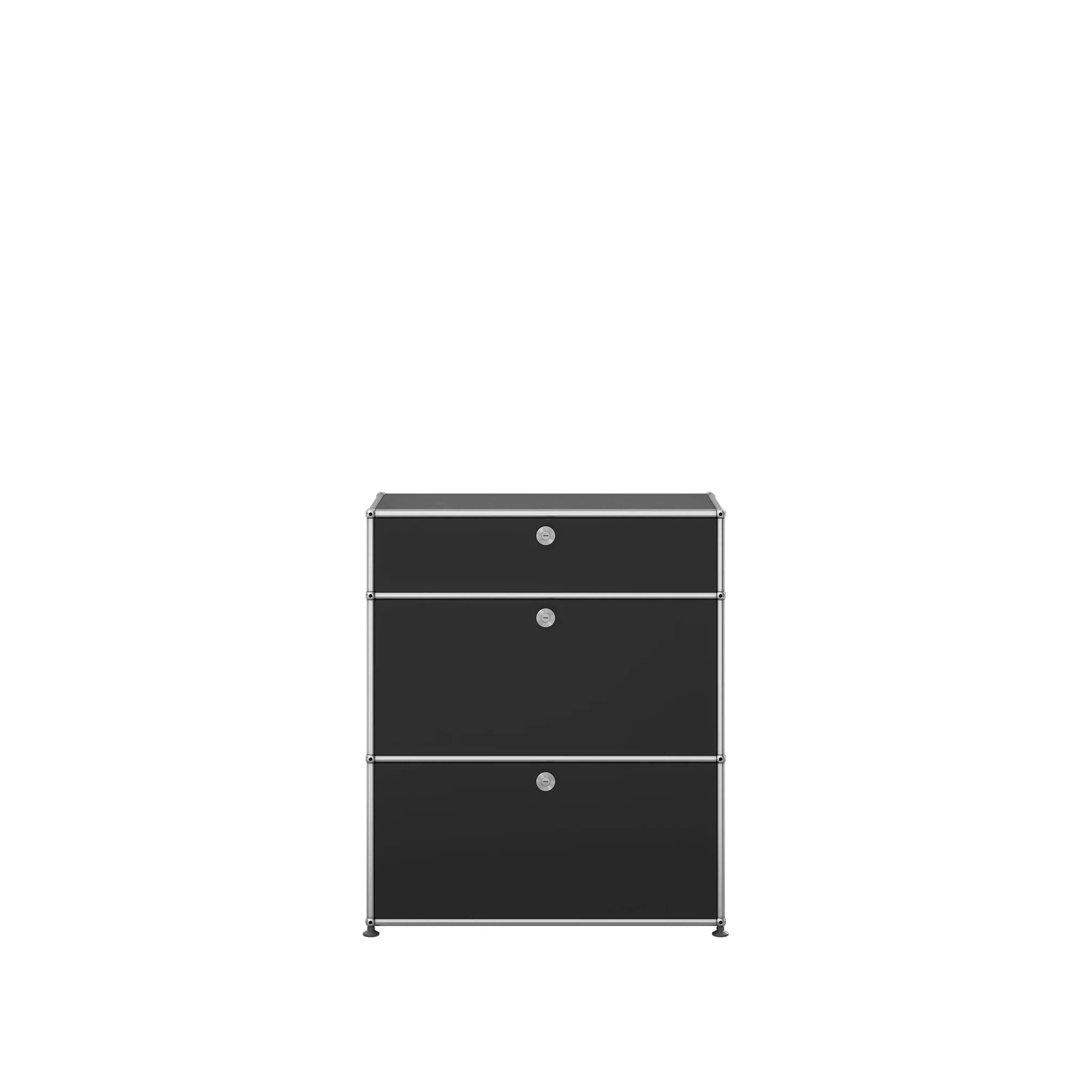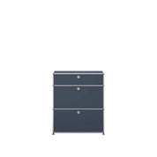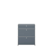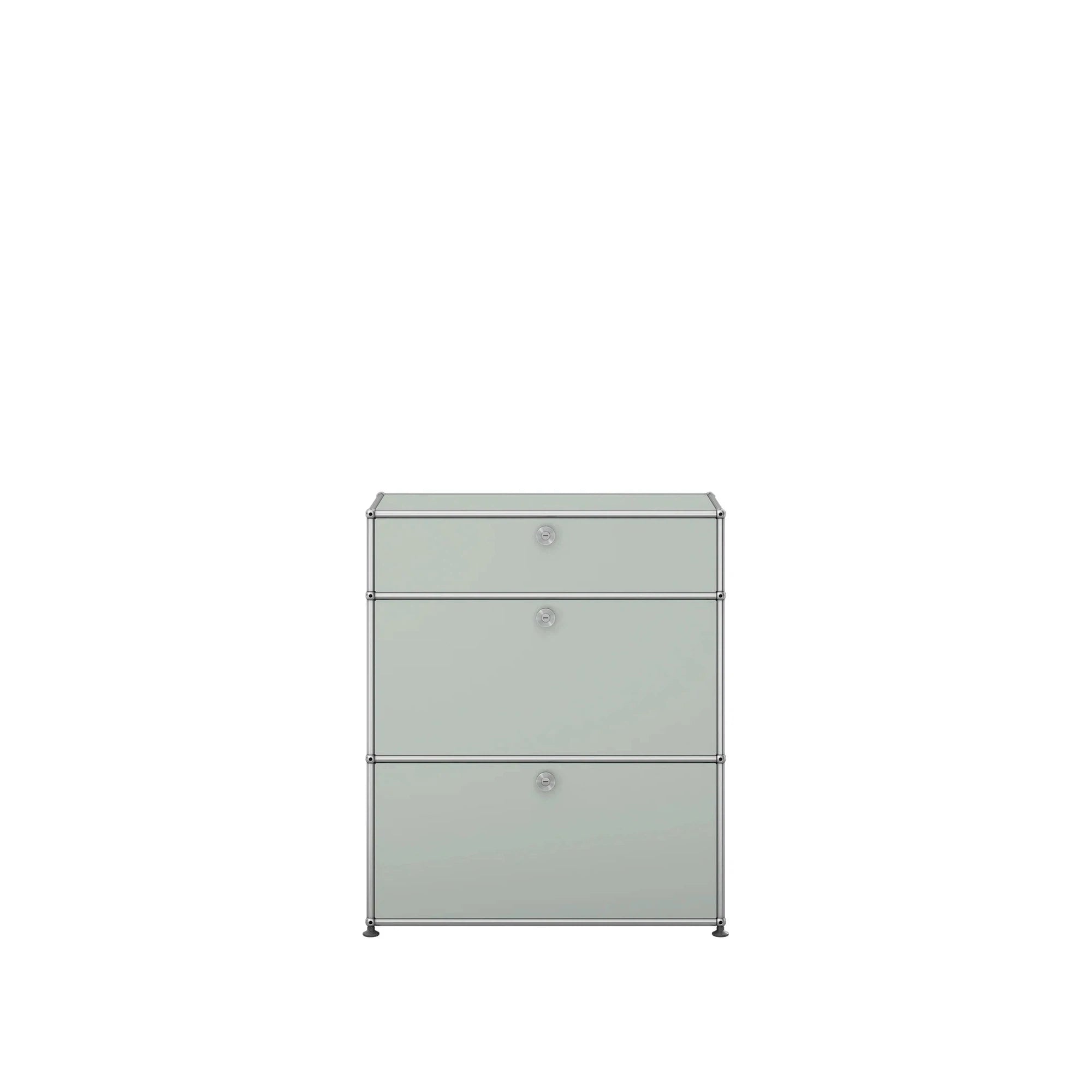 The Haller M25 cabinet represents the pinnacle of modular design, offering a versatile storage solution that combines functionality and aesthetics. With its composition incorporating a top drawer and two drop-down doors enclosing an intermediate shelf, it adapts to a multitude of storage needs. Its chrome steel structure, connected by iconic connection balls, is completed by powder-coated steel panels, guaranteeing both robustness and elegance. Mounted on height-adjustable glides, the Haller M25 furniture can be easily adjusted to perfectly fit any space, while allowing wall anchoring for added stability and security.