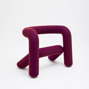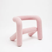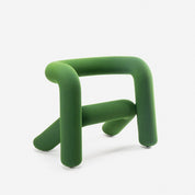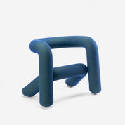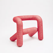 Contrary to what it suggests, this radical armchair offers surprising comfort. Taking up the plastic principles of the Bold collection, it combines two tubes generously inflated with thick polyurethane foam. The two identical tubular parts are nested one inside the other. An invisible assembly system allows the seat and backrest to fit flush, which barely seem to touch each other when assembled.