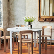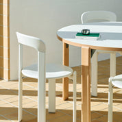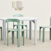 The Two-Colour M table, created by Belgian designers Muller van Severen for Hay, illustrates a harmonious marriage between two materials. Equipped with steel tube legs for optimal stability, the surface of the table is made of Valchromat, an organically colored MDF, robust and ecological. The table's design combines a uniform silhouette with contrasting color elements, providing a captivating visual appearance. Available in different sizes and color combinations, the Two-Colour table is perfect for various environments, ranging from domestic spaces to professional locations.