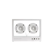 This Transparent Speaker is made up of a perfectly sealed glass enclosure, in which two full-range speakers take place, as if suspended in space. Two analog mini-jack inputs (one on the rear and the other under the speaker) allow you to connect a smartphone, laptop or music player. The USB port on the bottom of the speaker can power a Bluetooth or WiFi audio receiver, allowing you to listen to music wirelessly. This speaker can also be part of a Sonos installation, via the use of a Sonos Connect hub. This feature means the speaker supports wireless stereo when using two speakers. In other words, you can send music to two Transparent Speakers at the same time and choose which speaker will work as left or right, like traditional tower speakers, to create a true stereo image. The Transparent Speaker can be wall-mounted using the included wall bracket.