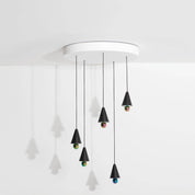 This Cherry light fixture consists of a round white plate and 5 mini Cherry pendant lights, the height of which is adjustable to provide a playground conducive to creativity.