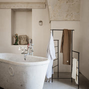 Made up of three panels of sleek, powder-coated metal, the Dora clothes rack forms a minimalist storage solution with a touch of Japanese aesthetics. Use it as a stylish drying rack, which can be folded so it doesn't take up much space when stored. Or use it as a simple room divider that lets you display your favorite clothes while creating a beautiful feeling of space in larger rooms.