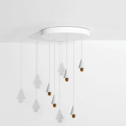 This Cherry light fixture consists of a round white plate and 5 mini Cherry pendant lights, the height of which is adjustable to provide a playground conducive to creativity.