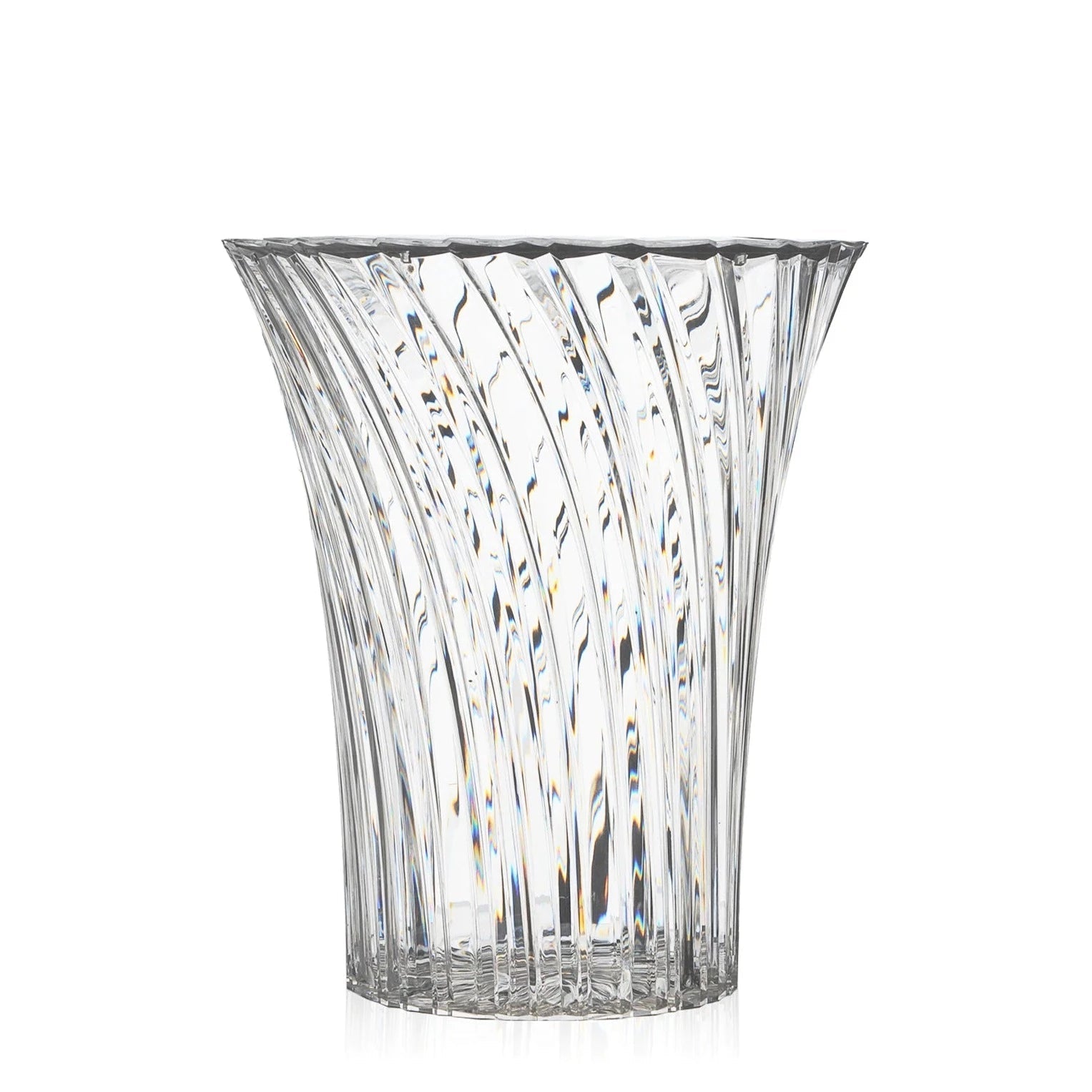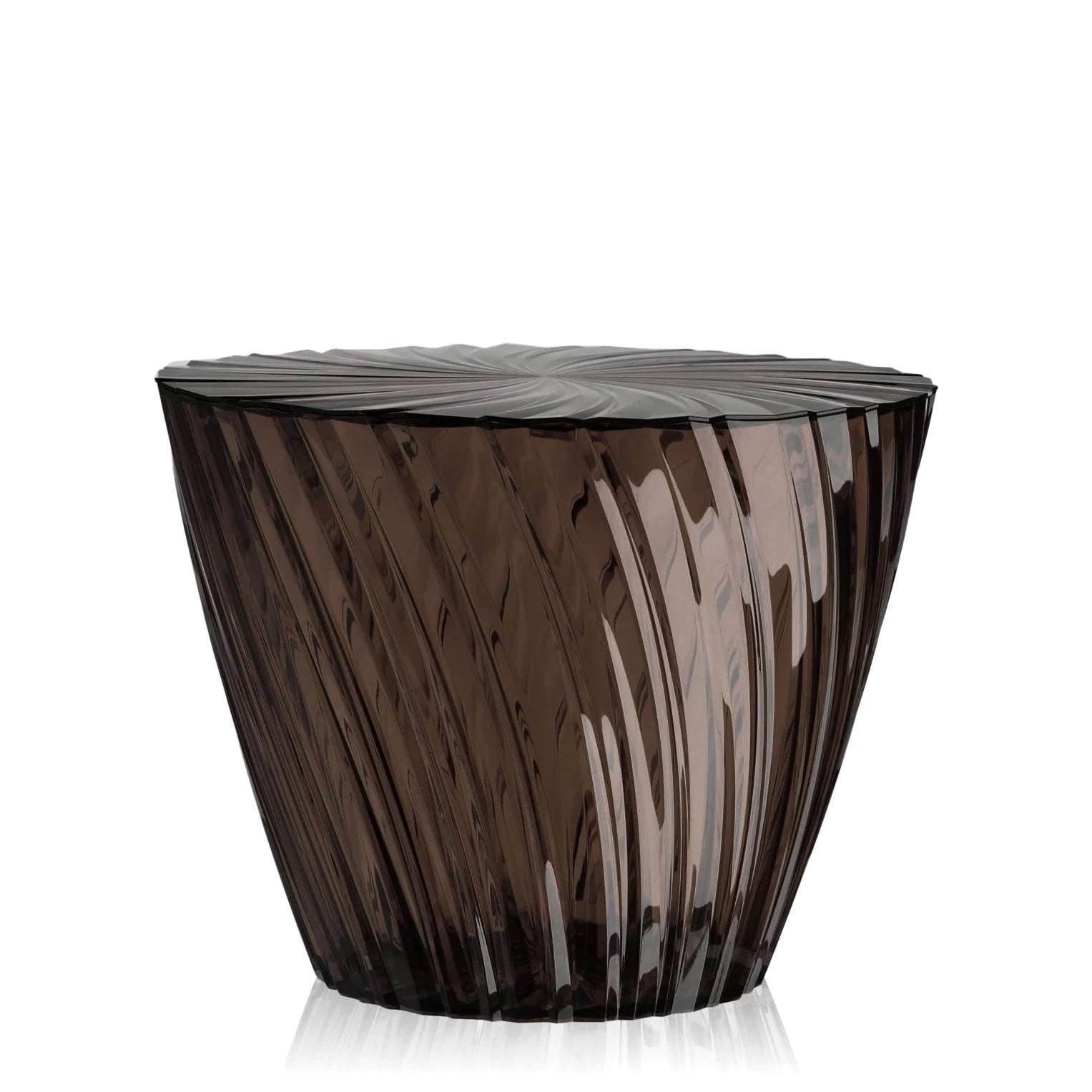 Sparkle, designed by Japanese designer Tokujin Yoshioka for Kartell, comes in two forms: table and stool. Made of polymethyl methacrylate (PMMA), available in amber, crystal or smoked, this versatile piece of furniture seduces with its pleated structure, which plays with light and creates captivating visual effects. The varied dimensions (Ø 38 x H 44 cm and Ø 45 x H 35 cm) allow perfect adaptability to different spaces.