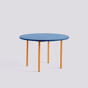Described by Belgian designers Muller van Severen as a marriage between two materials used at their best, the Two-Colour table series is inspired by the contrasts and similarities of the materials used. The tubular steel legs ensure optimal strength and stability, while the table surface is made of organically colored Valchromat - a unique type of sturdy, FSC-certified, water-lacquered MDF material. The two components are united by equal thickness, creating a uniform silhouette that is disrupted by the contrasting color elements. Two-Colour is available in different shapes, sizes and color combinations, all offering a distinct personality that makes it ideal for a wide variety of environments, from cafes and restaurants to homes and offices.