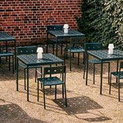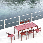 Designed for HAY by Ronan and Erwan Bouroullec, the Balcony Table is an elegant outdoor dining table. The simple rectangular design is softened by slim legs, the multiple holes on the table surface reinforcing the construction, while creating a distinct expression. Made from powder-coated steel with an outdoor primer for optimal strength and durability, Balcony is available in a number of different colors and sizes, making it a versatile table that can be used in all types of spaces, from small balconies and terraces to gardens and other larger outdoor spaces.
