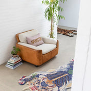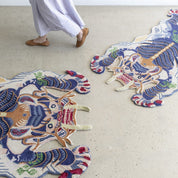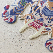The Burma Dragon rug from Bongusta is a true work of art. Hand tufted in India, this stunning rug carries each weaver's own variations, making each piece unique. The Burmese dragon motif is a tradition, but at Bongusta we add a touch of color and lots of details to explore, like the green lotus flower on the dragon's back. Made from wool and cashmere, this rug is not only durable but also soft to the touch, a real pleasure for bare feet. To experience another exquisite design, visit the Burma Dragon Face Rug .