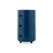 The modular elements have been designed to meet different needs and to fit perfectly into every room of the house. The conceptual solution of the Componibili modular system is based on the vertical, simple and solid superposition of the different pieces which simply fit together to create practical storage.