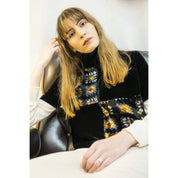Short-sleeved velvet top, 70s geometric patterns