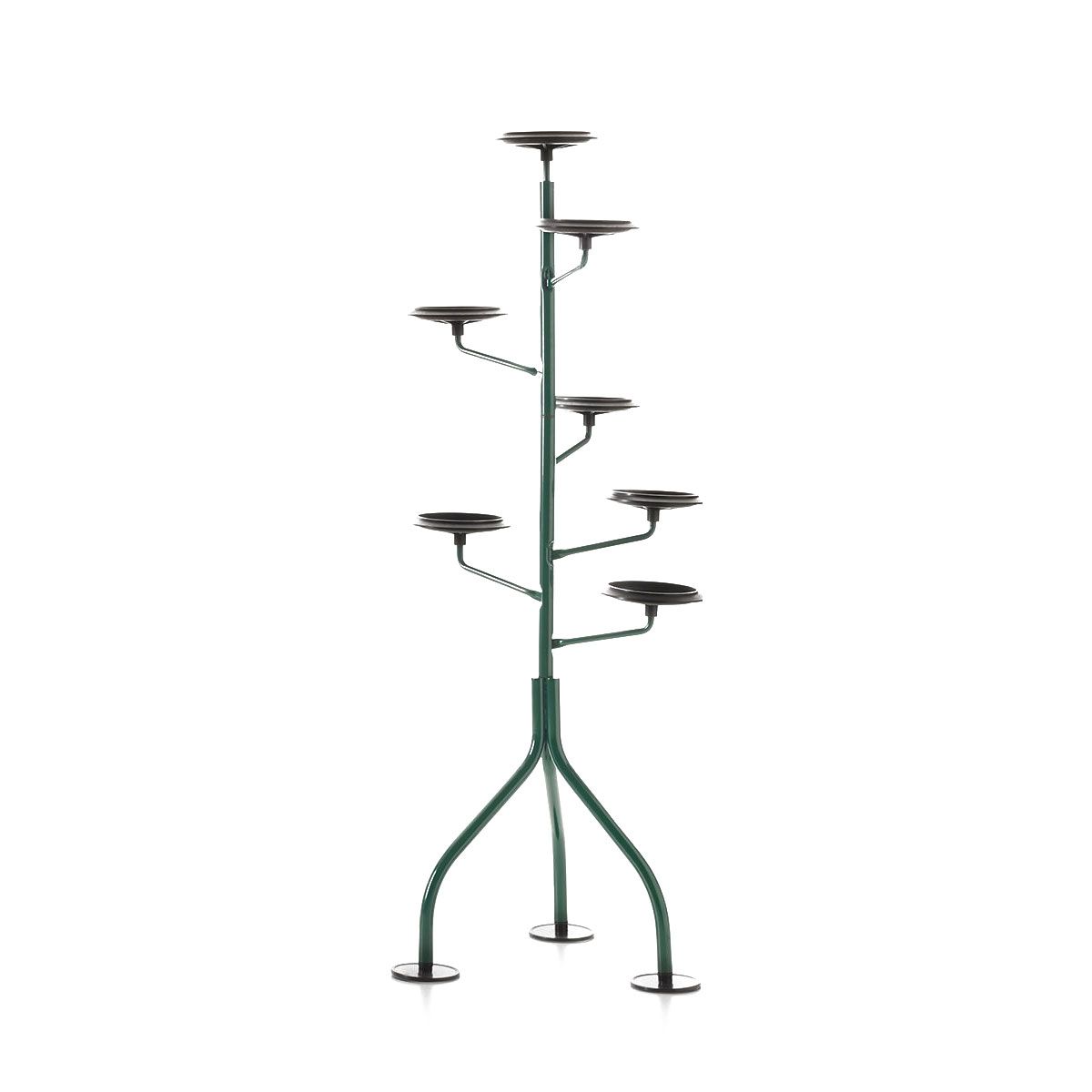 In 1983, legendary designer Achille Castiglioni created a functional work of art for Zanotta intended to revolutionize the way indoor plants were housed. This planter, both subtle and dynamic in its composition, offers an articulated and flexible design which supports the plants in their pots on small round plates, arranged with kindness throughout its vertical structure. Each element can rotate horizontally 120 degrees, allowing optimal arrangement of plants of different sizes for maximum exposure to daylight. This removable planter, available in several colors, is a real “vertical wood” which brings a touch of nature and design to any interior space.