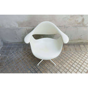 Rare "DAF" or "Swag Leg Chair" chair by George Nelson for Herman Miller dating from the 1950s. Made up of a fiberglass shell and an aluminum "La Fonda" base covered in white rislan Herman Miller logo embossed under the shell + sticker.