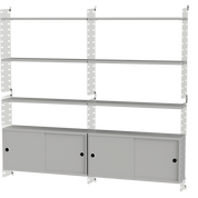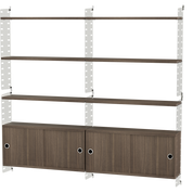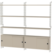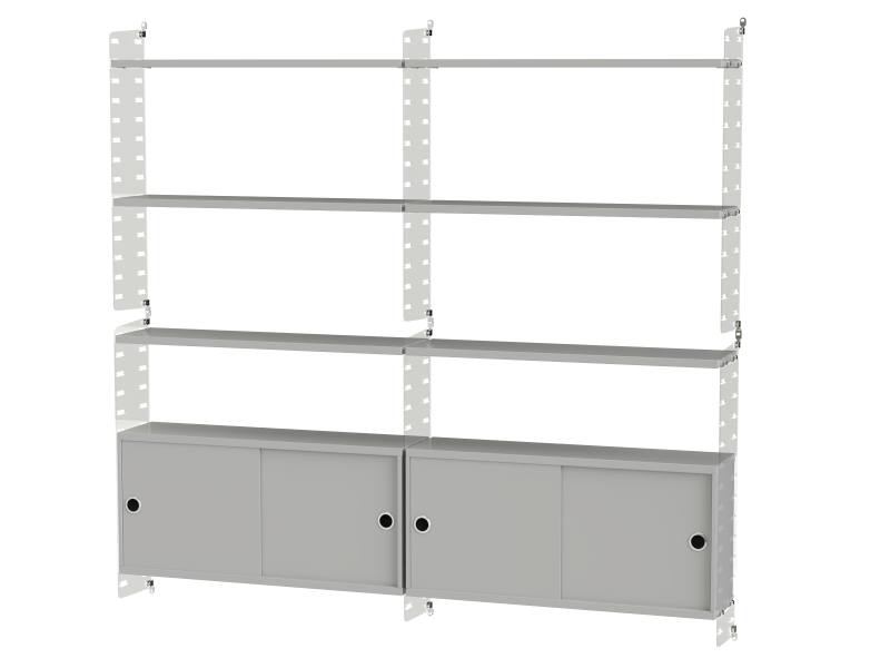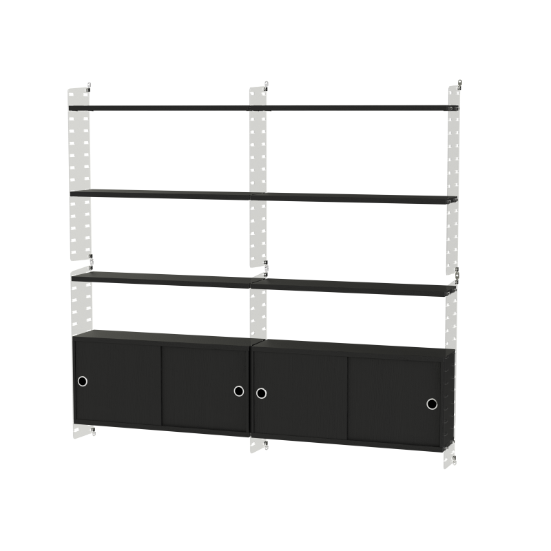 The String range has been enriched over the years: the shelves and metal uprights have been available in various colors and equipped with new accessories (newspaper racks, folding tables, cabinets with sliding doors, shelves with containers or desk trays).