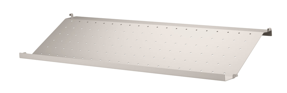 Inclined metal shelf with edge, for storing your shoes, suitable for String System uprights with a depth of 30 cm. It can hold 4 to 6 pairs of shoes.