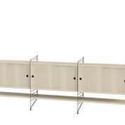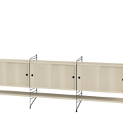 The STRING system is made up of two metal uprights (beige, white, gray, black or metal) on which you simply insert wooden shelves (beige, white, gray, black stained ash, ash, oak or walnut).