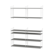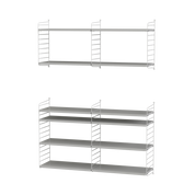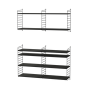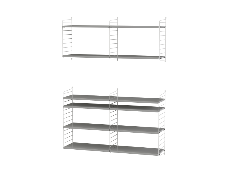 The String range has been enriched over the years: the shelves and metal uprights have been available in various colors and equipped with new accessories (newspaper racks, folding tables, cabinets with sliding doors, shelves with containers or desk trays).