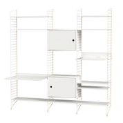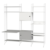 The String range has been enriched over the years: the shelves and metal uprights have been available in various colors and equipped with new accessories (newspaper racks, folding tables, cabinets with sliding doors, shelves with containers or desk trays).