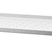 String® System galvanized shelves are designed for outdoor use. The shelves with a low edge, 2 cm, are available in a single width, 58 cm, and in two depths, 20 and 30 cm. The shelves with a high edge, 7 cm, are available in a single width, 58 cm, and in a single depth, 30 cm. Create a minimalist shelving combination with shelves that feature the same height edge, or mix the two edge heights to create a more dynamic combination. Add accessories to optimize your outdoor storage options. The shelves are compatible with String® System galvanized mesh uprights and are easy to move. Galvanized shelves are weather resistant and can be left outdoors all year round.