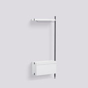 This Pier module offers you an airy shelving system. Thus, it can fit into a small space such as a studio or a small apartment. It consists of a top shelf, a rail for hanging clothes and a storage box. This module can integrate a bedroom or an entrance.