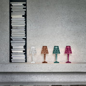 The maxi version of the table lamp with dimmer, 100% rechargeable via a simple electrical outlet and having 8 hours of autonomy. As with the mini versions, this allows it to be moved very easily: it is therefore ideal for outdoors but also for the home, bedside tables and to create environments full of atmosphere. The maxi version is also available with an electric cord.