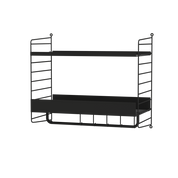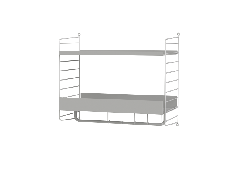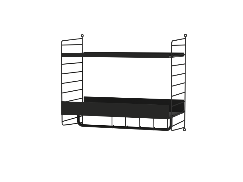 The String range has been enriched over the years: the shelves and metal uprights have been available in various colors and equipped with new accessories (newspaper racks, folding tables, cabinets with sliding doors, shelves with containers or desk trays).