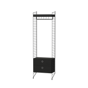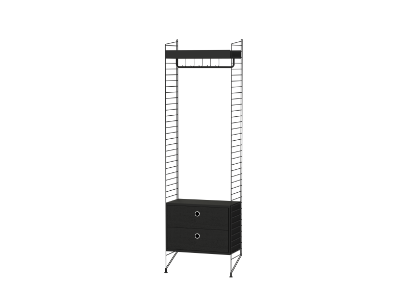 A pack specially designed for decorating the entrance to your house or apartment. This storage space helps declutter your entryway. This assembly allows you to store your coats, bags, scarves, etc. in the upper part. The lower part is made up of a box with two drawers. Dark and elegant, this style of shelves can perfectly dress up your interior.