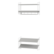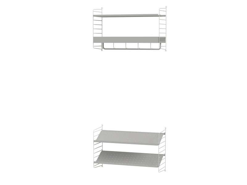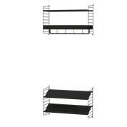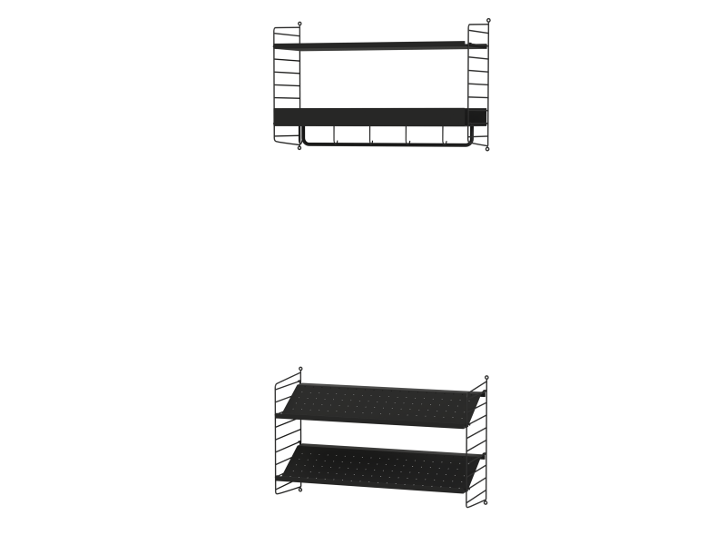 The String range has been enriched over the years: the shelves and metal uprights have been available in various colors and equipped with new accessories (newspaper racks, folding tables, cabinets with sliding doors, shelves with containers or desk trays).