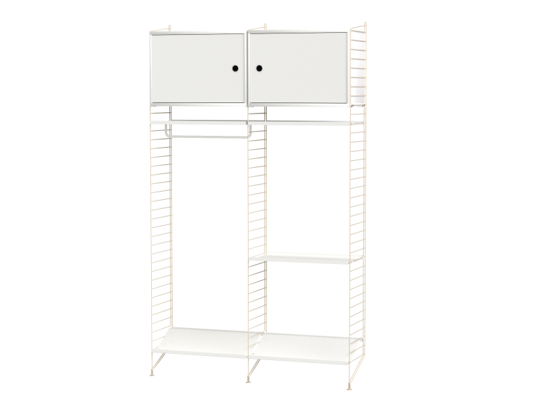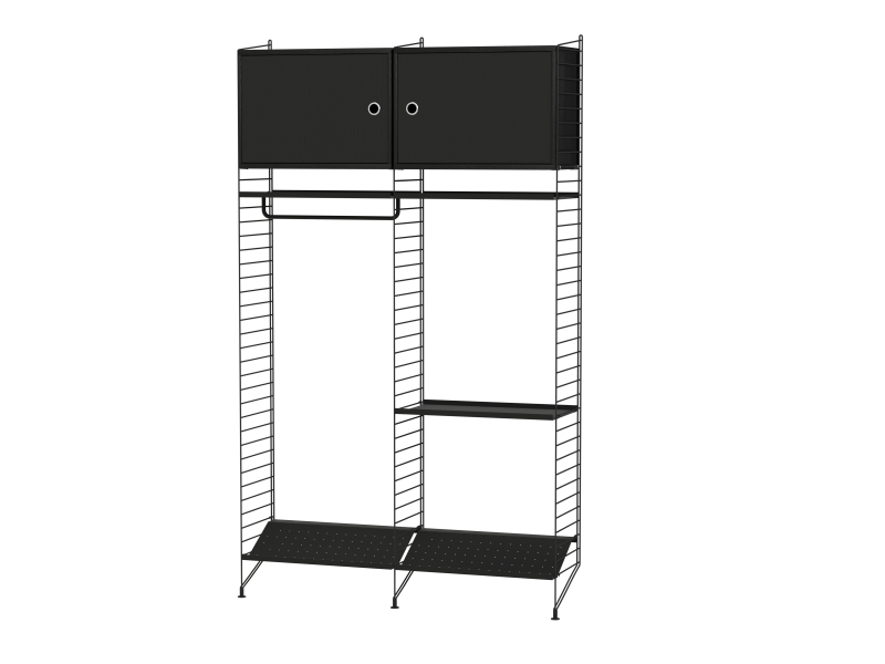 The String range has been enriched over the years: the shelves and metal uprights have been available in various colors and equipped with new accessories (newspaper racks, folding tables, cabinets with sliding doors, shelves with containers or desk trays).