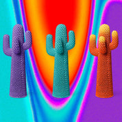 Since then, the cacti of Guido Drocco and Franco Mello have been developed by Gufram with many different colors and names, such as the white Biancocactus, the black Nerocactus, and the red Rossocactus (all from 2010), and finally the Metacactus, with colors as if burned by the sun (2012).