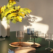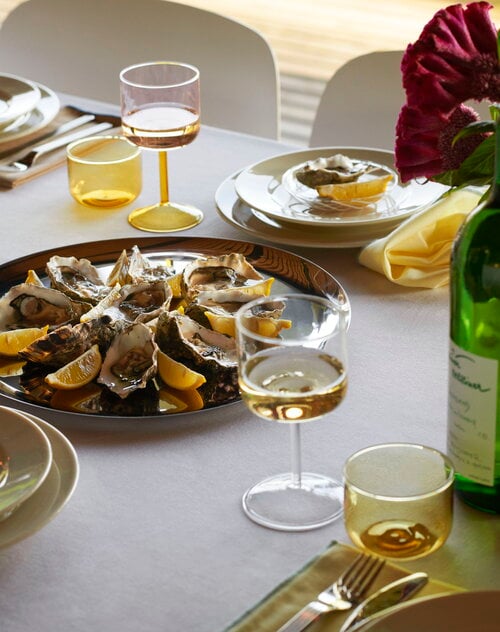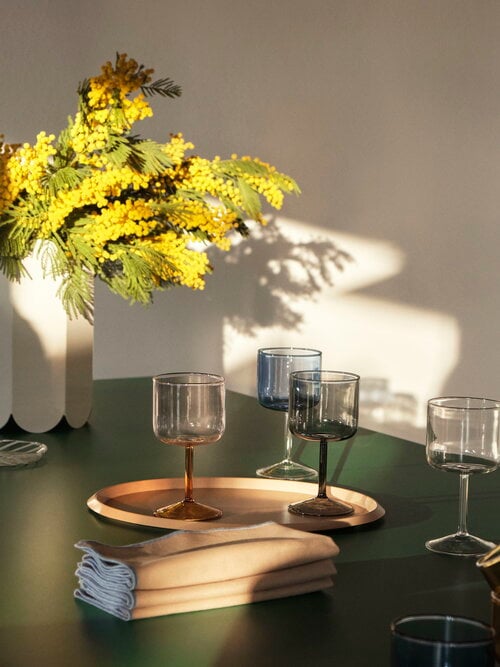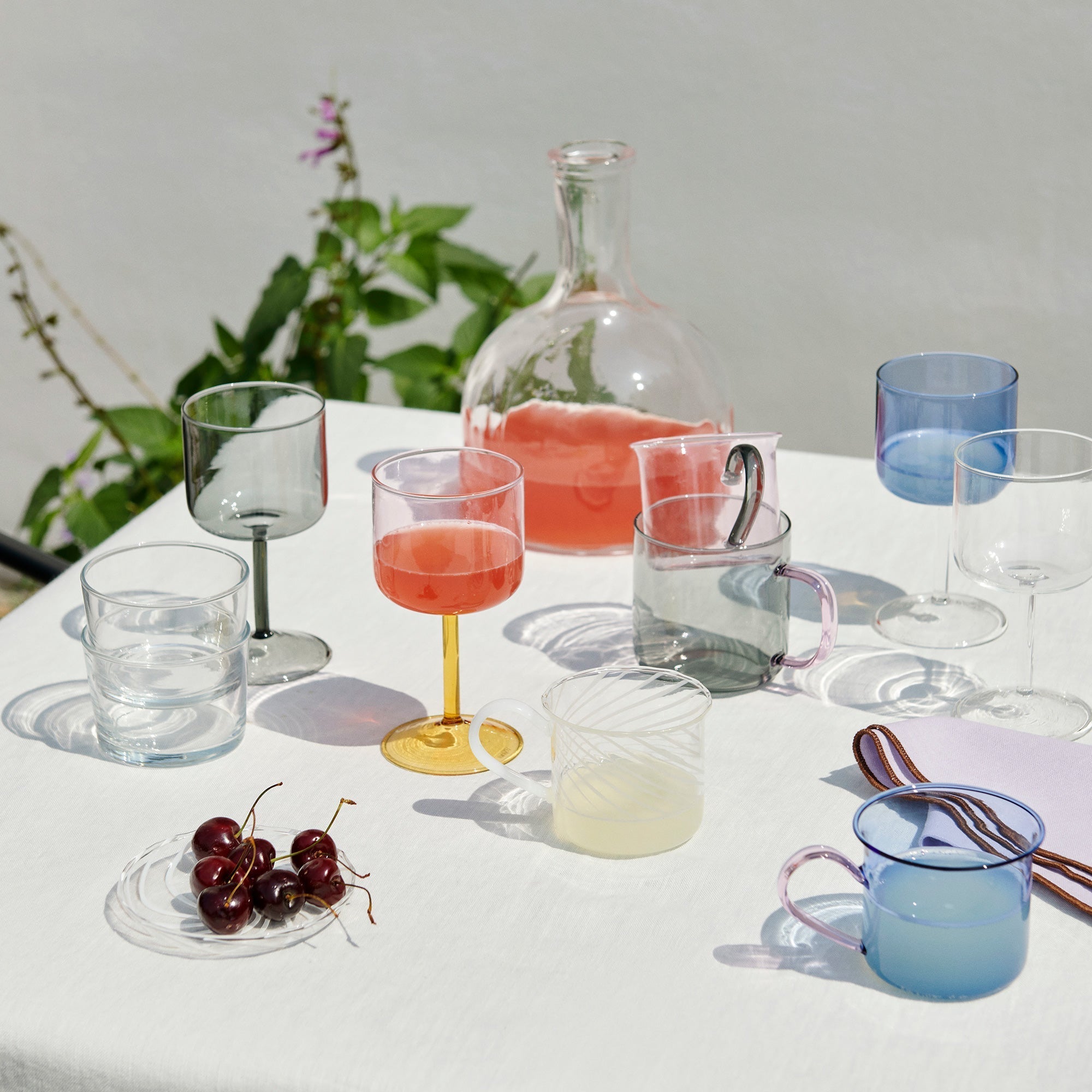 Tint Wine Glass is a collection of tinted and clear borosilicate glass wine glasses. The simple and elegant design is suitable for serving wine, as well as water and other non-alcoholic drinks. The glasses are delivered here in sets of two.
