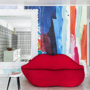 Le New Bocca, conçu en 1971 par Studio 65 pour Gufram, est un canapé iconique en forme de lèvres géantes, inspiré du célèbre portrait de Mae West réalisé par Salvador Dalí en 1935. Fabriqué en polyuréthane expansé à froid, il allie confort et expressivité sculpturale, devenant rapidement un symbole du Pop Art et du design italien des années 70.