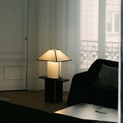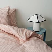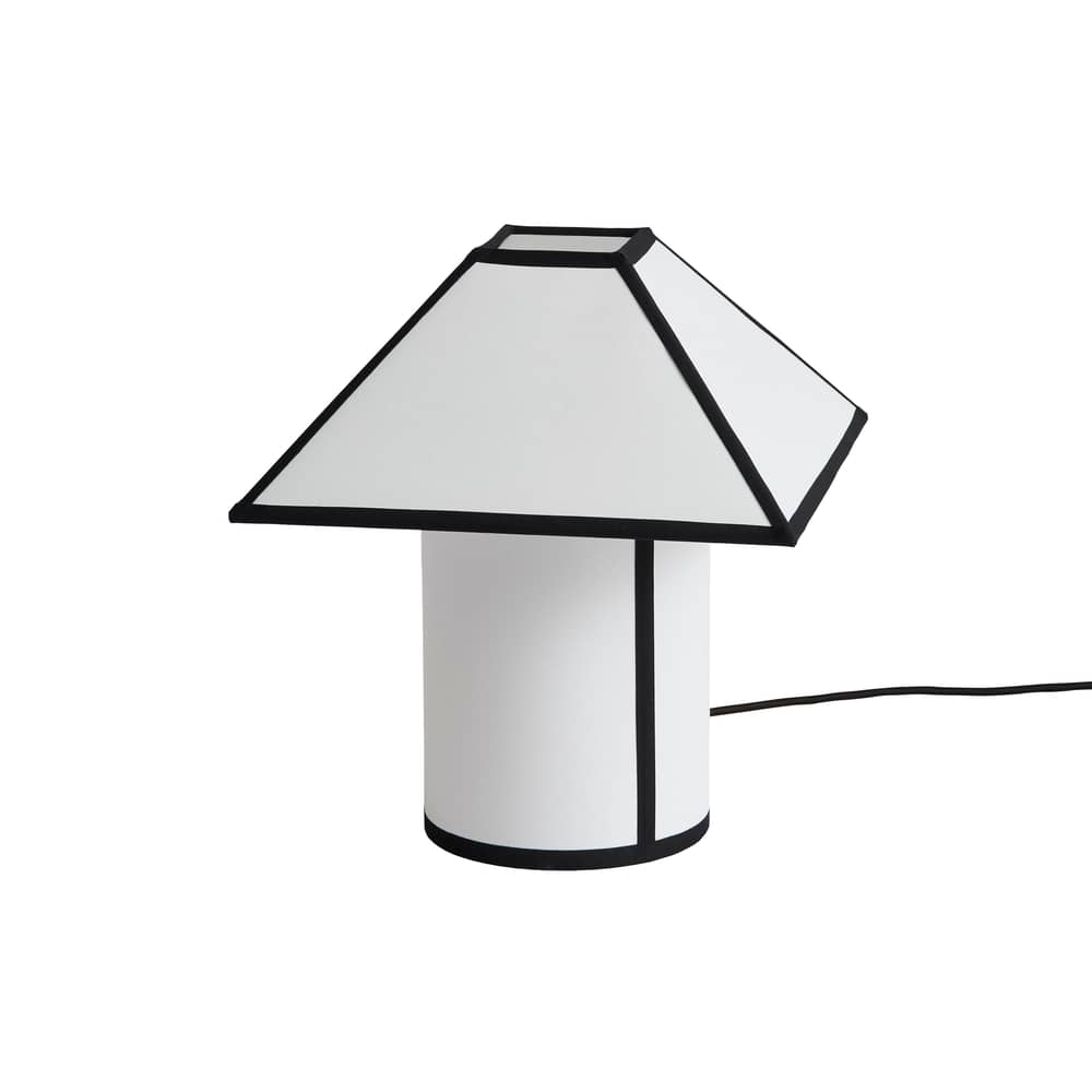 La lampe de table Ava Pyramid est un objet au graphisme affirmé et à l’élégance minimaliste. Pensée par Ana Kraš pour HAY, elle revisite l’abat-jour pyramidal dans une version contemporaine. Son abat-jour en **ECOPET™ recyclé** (issu de fibres de PET recyclé) allie légèreté et texture subtile. Le duo noir et blanc, rehaussé par un passepoil contrasté, lui confère une allure couture qui habille l’espace d’une lumière douce et enveloppante.