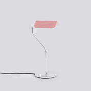 Pour créer la série Apex, le designer britannique John Tree s’est inspiré de la classique ‘’lampe de banquier’’ que l’on trouve dans de nombreuses bibliothèques. Il a réinterprété cette référence archétypale avec une sensibilité contemporaine et colorée. Les lampes Apex se caractérisent par un abat-jour en acier plié en forme de toit sur une fine base chromée. La couleur est un élément central du design qui contraste avec la base chromée.