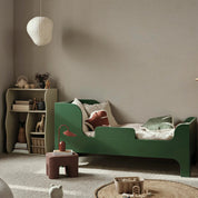 Le lit Sill Junior de Ferm Living, conçu par Trine Andersen, est une pièce de mobilier idéale pour la chambre d'un enfant, alliant fonctionnalité et esthétique moderne. Avec sa construction en MDF durable et sa finition en vert foncé, ce lit promet confort et sécurité pour les jeunes enfants.