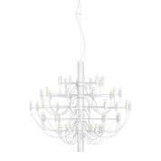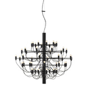 La suspension 2097, conçue par Gino Sarfatti en 1958, est un chef-d'œuvre iconique du design du 20ème siècle. Elle réinvente les lustres traditionnels pour offrir une forme ultramoderne inédite. Cette suspension trouve un équilibre parfait entre le faste des lustres baroques classiques et le style minimaliste des années 50, le tout agrémenté d'une touche d'esthétique industrielle.