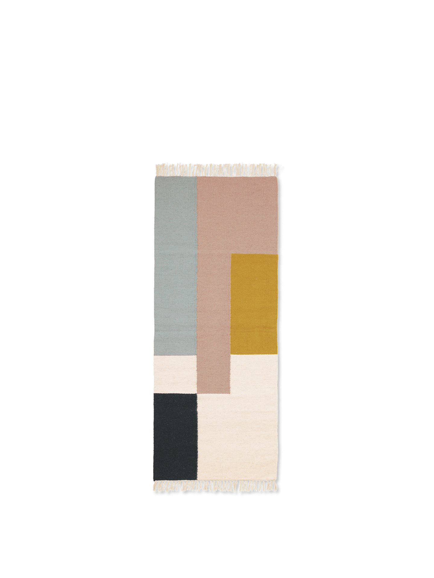 Un tapis est un excellent moyen de définir un espace et, à travers la couleur et la forme, crée un sentiment de cohérence entre les meubles et les accessoires d'une pièce. Dans de belles teintes brûlées, le Kelim Runner redéfinit le savoir-faire traditionnel kelim et le combine avec l'ADN de conception de Ferm ainsi que son sens aigu des formes géométriques, organiques et des couleurs. Les Kelim Runners sont fabriqués à la main, ce qui explique pourquoi le tissage d'un tapis à l'autre peut légèrement différer. La technique de tissage est le métier à tisser «Punja» - un métier à tisser traditionnel et manuel et l'une des techniques de tissage les plus anciennes. De plus, le fil de laine est teint à la main et une certaine variation de teinte peut se produire en raison de la nature de la laine et du colorant. Le tissage Kelim et les fils de laine ont une sensation unique et grossière. Cela fait partie de la caractéristique de la technique traditionnelle kelim.