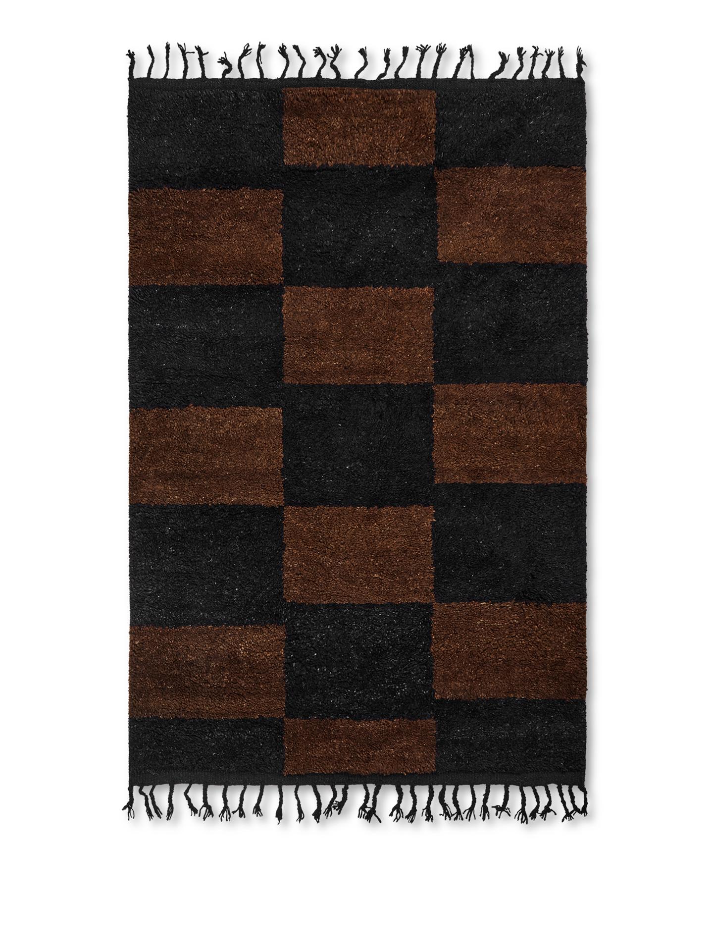 Le tapis noué Mara est une version contemporaine d'un tapis en laine classique, avec un motif à carreaux audacieux et des franges décoratives. Noué à la main en laine de Nouvelle-Zélande, le tapis a une expression douce et tactile avec un dessin graphique. Le résultat est un design audacieux mais équilibré qui donnera à n'importe quelle pièce un doux élément de contraste.